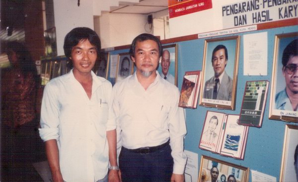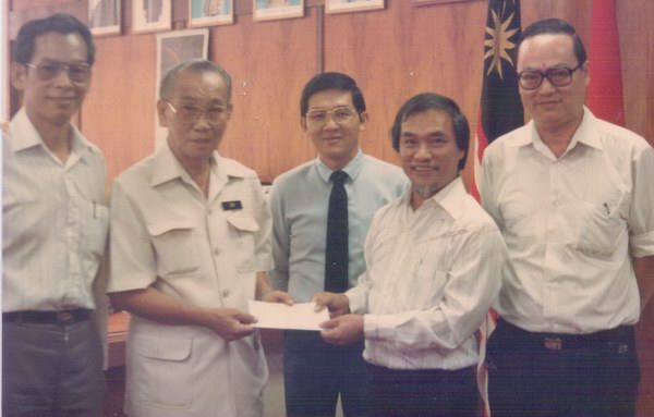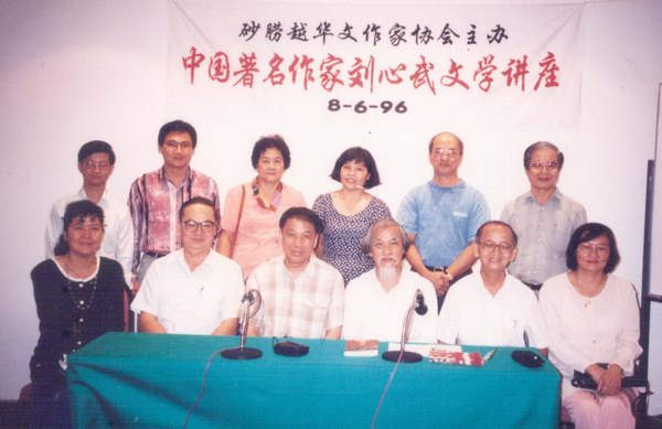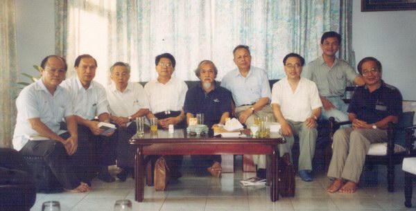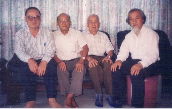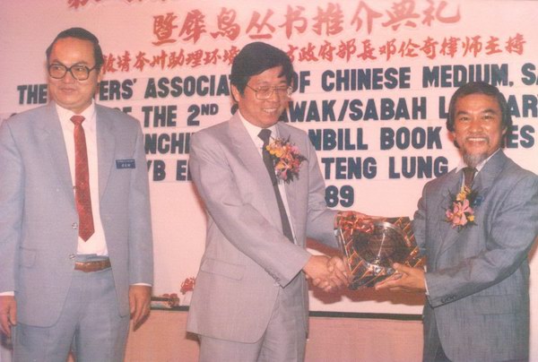 长蔡子今,邀请他出席本会30周年纪念活动,并为网站主持启用仪式。 图示:砂拉越华文作家协会会长李福安(左二)将邀请信交给蔡子今(右二),右为作协秘书杨谦俊,左为副秘书黄叶时。 |