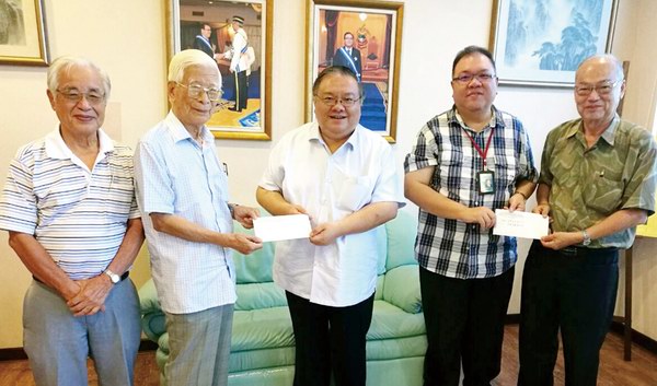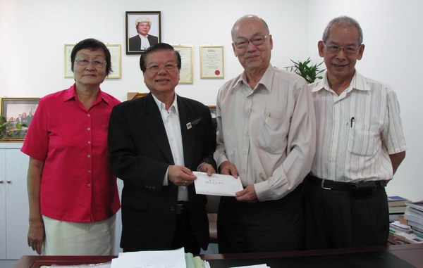 周年纪念活动。 图示:砂拉越华文作家协会李福安(右二)将邀请信交给拿督叶金来律师(左二),右为作协秘书杨谦俊,左为副秘书黄叶时。 |