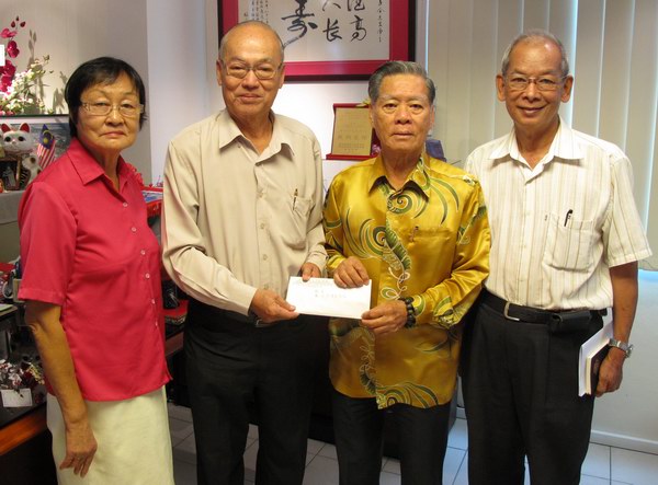 丛书》推展及网站推介礼,一众理事在会长李福安率领下,于9月15日特别礼貌拜会黄文彬集团总裁兼古晋中华总商会会长拿督黄国忠及《国际时报》总编辑兼古晋中中校友会